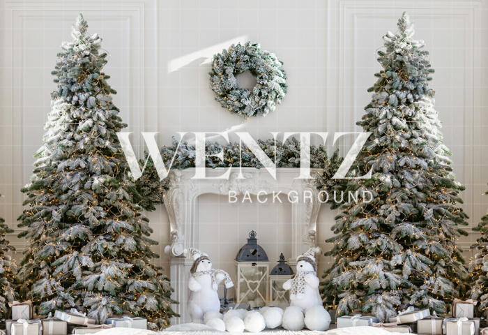 Fabric Photography Background Christmas Fireplace and Pines / Backdrop 2135