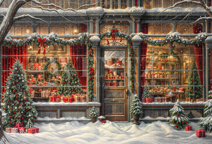 Fabric Photography Background Christmas Gift Store / Backdrop 6235