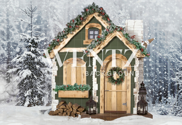 Fabric Photography Background Christmas House / Backdrop 1936
