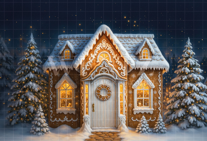 Fabric Photography Background Christmas House / Backdrop 7373