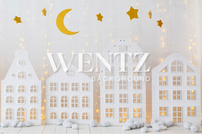 Fabric Photography Background Christmas Village with Stars / Backdrop 2152