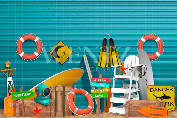 Fabric Photography Background Diving on the Beach / Backdrop 2382