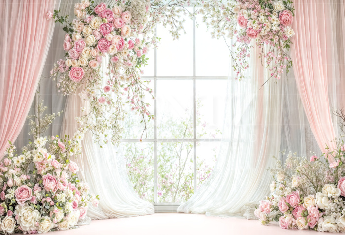 Fabric Photography Background Mother's Day Window with Flowers / Backdrop 6936