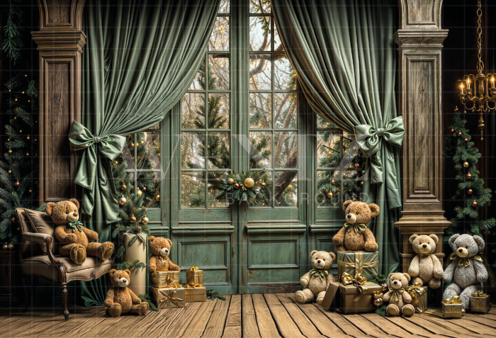 Fabric Photography Background Room with Teddy Bears Christmas / Backdrop 6329